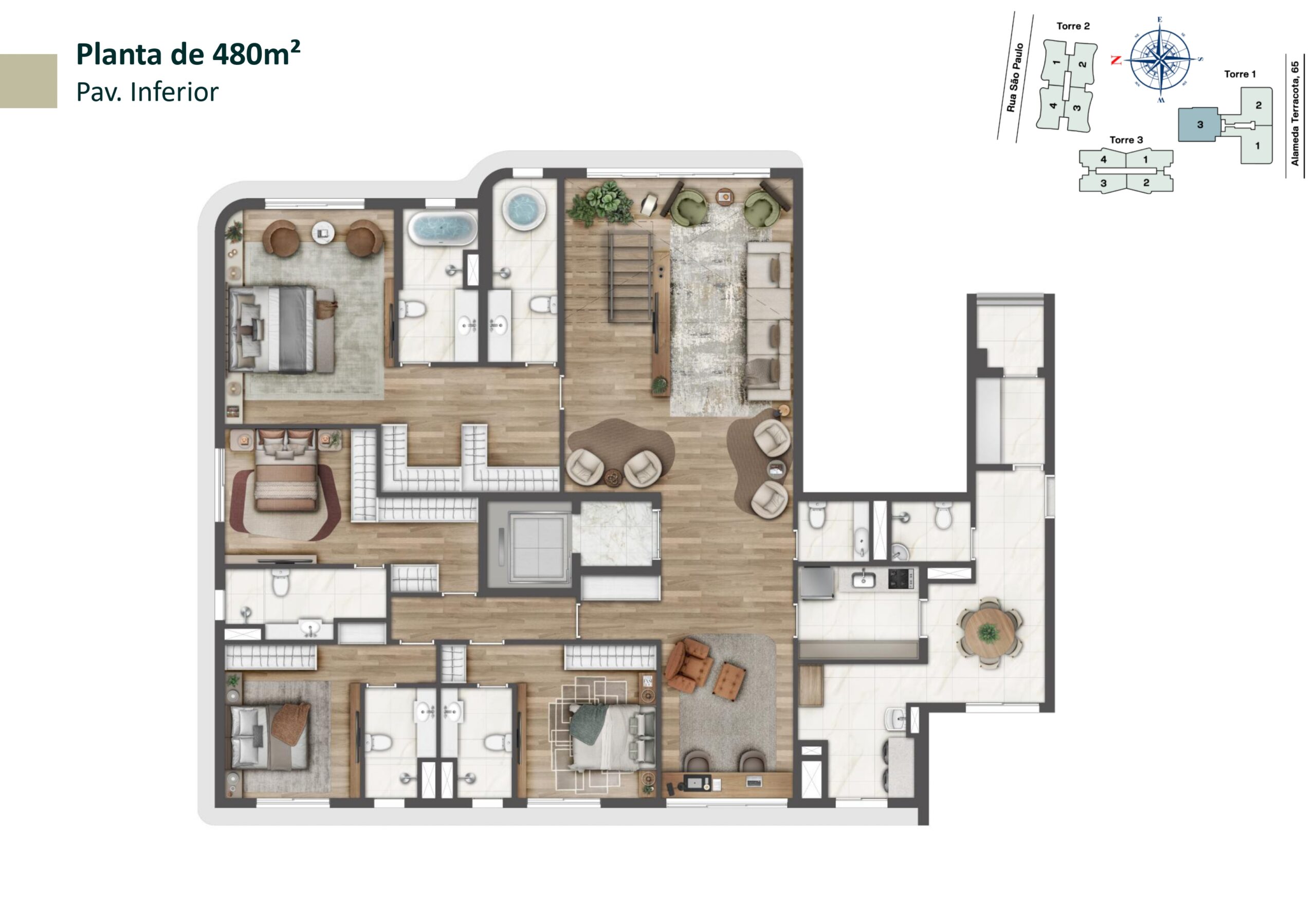 Projeto de áreas comuns: Carlos Rossi Arquitetura;